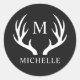 Angepasstes Monogramm mit Schwarz-weißem Hirschant Runder Aufkleber