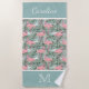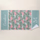 Freuen Sie sich auf Komfort am Strand oder am Pool und lassen Sie sich von diesem farbenfrohen Strandtuch cool und abkühlen. Lassen Sie sich im Sand von diesem schönen, zeitgenössischen pastellrosa Flamingos auf grünen Palmenblättern mit hellen türkisfarbenen Aqua und blass blauen Aquarellpinselstrichen abheben. Mit Raum zum Anpassen oder Personalisieren mit Namen, Monogramm oder Initialen Ihrer Wahl. Verziertes, trendiges, modernes und skurriles Design für die künstlerische Mode oder künstlerische Mode-Diva, angesagter Trendsetter, Vintager Retro-Aquarellmalerei-Stil oder abstrakter Motivliebhaber.