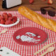 Angesagter Weihnachtsmann Papercut am Roten Weihna Pappteller