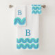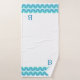 Schöne chische zeitgenössische Retro-Chic Mitte des Jahrhunderts moderne klassische azure blau, lavender violet und türkis grün abstrakten geometrischen Wellen Muster. Mit Raum zum Anpassen oder Personalisieren mit Monogramm oder Initialen Ihrer Wahl. Verziertes, skurriles und funky cooles Design, das auf einer Vielzahl von lustigen, klassischen und modischen, passenden Bädern und dekorativen Pullroom Dekorakzenten und Accessoires sowie niedlichen, modernen Strandessentials für den Trend-erfahrenen und kunstliebenden angesagten Trendsetter, Vintagen Retro-Look oder abstrakten geometrischen Motiv-Liebhaber zur Verfügung steht.