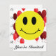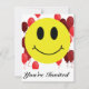 Klassisches Grinsengesicht umgeben von roten Ballons.