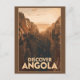 Angola retro Vektor Reise Design. Angola, ein verstecktes Juwel im südlichen Afrika, bietet atemberaubende Landschaften, von der pulsierenden Hauptstadt Luanda bis zu unberührten Stränden und atemberaubenden Nationalparks.