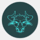 Neon-Stier in blauer Farbe auf dunkelgrünem Hintergrund