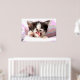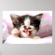 Ein Foto eines Schwarz-Weiß-Kätzchens in einer Kiste mit Leinenmaterial ausgekleidet, klettert raus und zeigt dem Betrachter seine Zähne und Nägel in der Verteidigung , Poster-Effekt verwendet