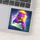 Dieser Aufkleber hat einen wütenden lila Löwen darauf.