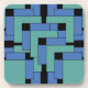 Anhang Untersetzer aus hartem Kunststoff. Anhang ist ein abstraktes Design von Vexenwraith und besteht aus blauen und türkisfarbenen Blöcken auf schwarzem Hintergrund.