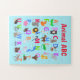 Animal ABC Design Jigsaw Puzzle mit anpassbarer Hintergrundfarbe und Text in oberster Zeile. 30 übergroße Stücke sind perfekt für Kleinkinder, aber Sie können Ihre Auswahl auf verschiedene Größen und Schwierigkeitsgrade umstellen.
