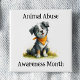 Framing the illustration, the phrase “Animal Abuse Awareness Month” is thoughtfully split into two sections—across the top and grounding the bottom of the design—creating a balanced composition that keeps the message clear and impactful. The gentle, approachable art style makes this button especially meaningful for educators, advocates, shelters, and animal lovers who want to raise awareness in a compassionate and hopeful way. Perfect for events, fundraisers, classroom programs, or everyday wear, this button encourages protection, kindness, and advocacy for animals in need.
