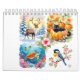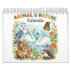 2026 Animal & Nature Calendar – Square watercolor illustrations featuring 12 adorable animals in their seasonal habitats. Each month includes light zentangle backgrounds and outlined bubble-letter month names for a decorative, artistic style. Full-page illustrations with functional month grids.