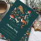 Jolie invitation verte rustique avec une jolie illustration traditionnelle de Noël vert et rose nostalgique avec des animaux de forêt boisée dans la nature avec la neige. Parfait pour invitation vos proches à une fête de Noël. OEuvre originale de Caroline Bonne Müller