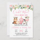 Animaux de la ferme rose Floral Invitation Anniversaire Jolie invitation d'anniversaire de la ferme avec un arrangement floral rose, blanc et vert et quatre animaux de la ferme mignons. L'invitation pour l'anniversaire de la ferme de cette fille est une façon douce pour les invités invitations d'une fête d'anniversaire à thème de la ferme à venir pour une petite fille.