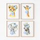 Ajoutez des touches de finition à la crèche de votre bébé ou à la chambre de votre enfant avec ces magnifiques gravures d’art ! Le design présente des animaux de la jungle (lion, girafe, éléphant, zèbre), gomme à bulle bleue, fleurs d'aquarelle bleue et verdure.
