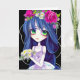 Niedliche Anime inspiriert Brautparty-Vorschlagskarte, mit Cartoon-Grafiken einer, blauen Haare, große mit Augen Brautjungfrau, vor einem schwarzen Hintergrund. Werden Sie meine Bridesmaid oder Trauzeugin Karte bereit, um für jeden Ihrer Freunde personalisieren.