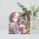 Ein hübsches, blaues, mit Augen Anime-Mädchen, das eine hübsche, mit Augen Siamkatze hält, umgeben von Blume.