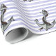 Original Aquarellmalerei von Sandra Gale, mit einem kühnen Metallanker mit einem großen Seil umwickelt. Horizontal gestrichene, lichtdurchlässige Streifen bilden einen wasserreichen nautischen Hintergrund für dieses sommerliche Design. Ideal für Strandbungalows und Zuhause!