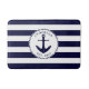 Die Badewanne ist ein Badezimmerdekor zum Thema Strand, das mit einem marineblau-blauen Schiffsanker, Familiennamen, Jahr des Todes, Marinebänder und weißen Streifen sowie einem Seilzirkel dekoriert ist. Es ist einfach, diese Badematte mit Ihrem Namen, Initialen, Familiennamen oder einem anderen Text zu personalisieren. Das Badezimmer mit Anker ist im Küstenstil eingerichtet und eignet sich perfekt für die Dekoration eines Strandhauses.