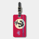 Dieser Gepäckanhänger kennzeichnet eine Grafik eines Ankers mit einem Seil, der gelben und weißen gestreiften Sonne und einiger Linien der Wellen des blauen Wassers alle auf einem roten Hintergrund. Dieser einfache Seeentwurf ist für die Person groß, die nahe Wasser reist oder vacations.