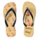 Diese keine Frills Flip Flops haben einen beigen Hintergrund. Der verlassen Schuh hat ein sich wiederholendes Ankermuster. Auf dem rechten Schuh, zwei größere Anker und die Worte "Anker weg!"