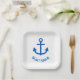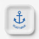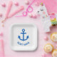 Ankerblau Personalisiert, Name des Schiffes weiß Pappteller