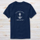 Nautical-Thema-Boot Kapitän's marineblau T - Shirt mit einer weißen Abbildung eines klassischen Ankeres und Ihren Namen und Ihr Boot-Name in der modernen weißen Schrift.