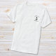 Der weiße T - Shirt eines Schiffskapitän mit einem Thema zum Thema Nautik mit einer Abbildung eines Ankeres und ihrem Namen und Schiffsnamen in der modernen Schrift.