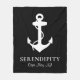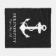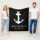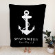 Eine schicke, moderne schwarze Decke zum Thema Wassersport für Ihr Boot, die eine weiße Abbildung eines Ankeres zeigt. Monogramm Ihr Boot Name und Position in eleganter weißer Typografie.