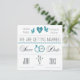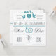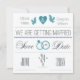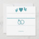 Eine unweiße und aquamarine Ankündigung mit Herz, Taube, Hochzeitsringen und einer ""-Nachricht.Die Karte lässt sich leicht mit Ihrem Text, Schriftart, Schriftart, Papierform und der Auswahl von sechs Papiertypen anpassen.