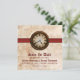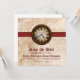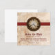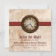 Diese antike Uhr Ankündigung Datum freihalten mit einem Vintagen Uhrwerk, das sich auf einer Metallkugel-Kette und einem schlichten, dunkelrot gestreiften Rand deutlich zentriert. Der bedrückte Look des grungy Papier Textur Hintergrund vervollständigt das antiquierte Gefühl dieses einzigartigen Designs. Diese Save the Date Einladung ist ideal, um Ihre Vintage oder steampunk inspirierte Hochzeit zu verkünden. Einfach anzupassen, fügen Sie einfach Ihre Hochzeitsdetails in den Bereichen zur Verfügung gestellt. Klicken Sie auf "Anpassen", um zusätzliche Optionen zu finden, um dieses Design zu personalisieren.
