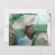 Dieses Ankündigung Datum freihalten verfügt über ein Foto aus buntem Meerglas am Strand. Ein perfekter Weg, um das Datum Ihrer Hochzeit am Strand bekannt zu geben.
