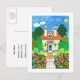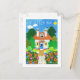 Eine vollständig anpassbare neue Adresse Ankündigung Postcard mit dem Gruß in Niederländisch, mit einem hübschen Haus und Garten, aus einer handbemalten Papiercollage von Judy Adamson.