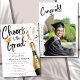 Ankündigung der Grand Champagne Toast Graduation Party - Eine moderne und einzigartige personalisierte Graduierungsparty lädt zur Ankündigung ein. Mit einer festlichen Champagnerflasche mit Konfetti. Die Phrase "Cheers to the Grad" ist in der Schriftzeichen-Schrift geschrieben. Bearbeiten Sie diese Einladungs-Vorlage für Uni- oder Universitäts-Abschluss mit Ihren eigenen Veranstaltungsdetails. Auf der Rückseite fügen Sie dem Bogen das Bild Ihres Absolventen hinzu. Auch als sofortiger digitaler Download verfügbar, ideal für den Versand per Text, E-Mail oder Social Media.
