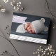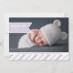 Fügen Sie Ihr Lieblings-Landschaft-orientiertes Neugeborenes-Foto zu dieser modernen Vollblut-Ankündigung hinzu und teilen Sie Ihre Freude mit Freunden und Familie. Das Design zeigt den Namen, das Geburtsdatum und die Geburtsdaten Ihres Mädchens auf einem blassfarbenen Lesebrillenbanner. Ihre Familiengrüße werden auf einem unteren Rand mit diagonalen Streifen in weiß, blassgrau und lavender angezeigt.