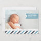 Fügen Sie Ihr Lieblings-Landschaft-orientiertes Neugeborenes-Foto zu dieser modernen Vollblut-Ankündigung hinzu und teilen Sie Ihre Freude mit Freunden und Familie. Das Design zeigt den Namen, das Geburtsdatum und die Geburtsdaten Ihres Babys auf einem himmelblauen Bandbanner. Ihre Familiengrüße werden auf einem unteren Rand mit diagonalen Streifen in weiß, navy und himmelblau angezeigt.