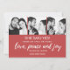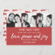 Feierliche Feiertage Rote Verlobung Ankündigung, die auch Ihre Weihnachtskarte mit drei Ihrer individuellen Fotos! Passen Sie die Vorlage mit Ihren drei benutzerdefinierten quadratischen Fotos an (für beste Ergebnisse schneiden). Der Kartenvorteil lautet - Sie sagte ja! Herzlich willkommen bei Familie und Freunden in dieser Feriensaison. Liebe, Ruhe und Freude. Passen Sie den unteren Rand der Karte mit Ihren Namen an. Die Rückseite der Karte koordiniert das rote Kieferndesign.