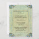 Eine alte Hochzeitseinladung mit Pfauenfedern und einer zarten Kalligraphie-Grenze. Diese Einladung ist Teil eines kompletten Set. Einladung: