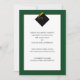 Klassische Graduierungsankündigungen für den Abschluss mit eleganter schwarzer Kappe und goldener Tassel auf grünem Hintergrund.