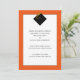 Klassische Graduierungsankündigungen für den Grad mit eleganter schwarzer Kappe und goldener Tassel auf orangefarbenem Hintergrund.