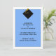 Klassische Graduierungsankündigungen für den Grad mit eleganter schwarzer Kappe und goldener Tassel auf hellblauem Hintergrund.