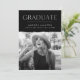 Feiern Sie mit diesen Ankündigungen für den Abschluss Ihres Fotos den aufregenden Meilenstein Ihres Absolventen! Das Design zeichnet sich durch "Graduate" an der Spitze der weißen modernen Schrift mit einer schwarzen Kante, die an das hohe Foto des Absolventen grenzt. Personalisieren Sie die Ankündigung, indem Sie den Namen des Absolventen, den Schulnamen und das Abschluss Jahr. Die Karte kehrt um, um ein strukturiertes schwarz-weiß gestreiftes Muster anzuzeigen.