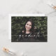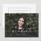 Diese vollständige Ankündigung von Foto Abschluss enthält das Wort "Graduate" in weißer Schrift auf der anderen Seite geschrieben. Es hat Platz für den Namen des Absolventen, das Klassenzjahr und die Schule. Die Rückseite der Karte kann für eine persönliche Nachricht oder für die Einladungsdetails der Graduiertenparty verwendet werden.