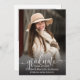 Elegante Script Graduate Simple Foto Abschluss Announcement-Karte mit Skript-Schriftart voll blute Portrait-Foto auf der Vorderseite mit Namen und Abschluss Details. Die Rückseite hat ein zweites Foto mit weiteren Details. Klicken Sie auf die Schaltfläche Bearbeiten, um dieses Design anzupassen.