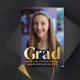 Moderne Schriftart von "Grad" Buchstaben mit vollblühtem Foto. Wählen Sie Ihre Folienfarbe, Gold, Silber oder Rose Gold. Fügen Sie auf der Rückseite eine Veranstaltungsdetails hinzu, bzw. zukünftige Pläne oder je nach Wunsch weitere Foto.
