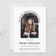 Mit unserem eleganten minimalistischen Foto Abschluss verkünden Sie Ihre akademische Leistung. Dieses Design zeichnet sich durch einen schwarzen Text auf einem unberührten, weißen Hintergrund aus, mit einem gewölbten Foto Bereich, um Ihr Lieblings-Abschluss Foto zu zeigen. Über dem Foto steht ein Bogentext mit "Klasse der 25" und fügt eine hoch entwickelte Touch hinzu. Die Rückseite der Ankündigung beinhaltet das Sprichwort "Graduate" mit gewölbter Kollegialität, zusammen mit einem charmanten Bild einer Graduationsmütze und Diplom. Personalisieren Sie die Kappe mit den Initialen des Absolventen für ein einzigartiges und unvergessliches Detail. Ideal, um Ihren besonderen Tag in stilvoller Form zu verkünden!
