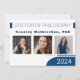 Eine PhD-Abschluss-Ankündigungskarte für Fotos mit drei Fotos, dem Namen des Absolventen und dem Schuljahr. Die Karte hat ein weißes und blaues Farbschema. Fügen Sie einfach Ihre Fotos und Informationen hinzu, fügen Sie diese Ankündigungen Ihrem Warenkorb hinzu und erzählen Sie allen von dieser großen Leistung. Modernes Blue PhD Foto Abschluss Ankündigung Klasse 2023 Holidayday Design | ©Melissa Patton - Designer