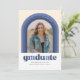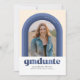 Diese lustige Abschluss-Ankündigung verfügt über einen Bogen mit verschiedenen Blautönen rund um ein Single-Foto. Die Rückseite der Karte hat ein koordinierendes Streifenmuster sowie Platz für eine persönliche Nachricht oder Einladungsdetails für eine Abschluss-Feier.
