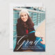 Erzählen Sie Ihren Abschluss stilvoll mit einer eleganten Blumenankündigung im Abschluss. Das Design enthält das Wort "grad" in einem extravaganten Skript-Schriftart, Platzhalter für benutzerdefinierten Text und ein Bild und ein hübsches Blumenmuster auf der Rückseite.