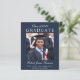 Eine preisgünstige, einfache und elegante Ankündigung des dunkelblauen Abschlusses mit einem Foto des Absolventen, seinem Namen und Klassenjahr in einer weißen Schrift und seiner Schule, Hauptfach und Ehren in der modernen weißen Typografie.