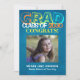 Trendy Retro Stil bunt blau verbrannt orange gelb 8. Klasse Mittelschule Ankündigungskarte mit individuellem Foto.