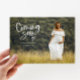Stilvolle Schwangerschaftsankündigungskarte mit einem überlagerten Skripttext, der "bald kommen" mit einem Herz sagt. Sie können 3 Fotos auf dieser Karte hinzufügen (vorne und hinten).