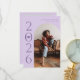 Stilvolle und moderne Abschluss-Ankündigungskarte zum Versenden an Familie und Freunde. Es gibt einen Lavendelbogenrahmen um Ihr Foto. Sie können ein zweites Bild auf der Rückseite hinzufügen, und die Nachricht ist editierbar. Das Jahr ist auf der Seite mit einer Abbildung einer Graduationskappe innerhalb der Zahl Null geschrieben.